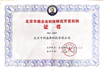 • 北京市級企業科技研究開發機構證書